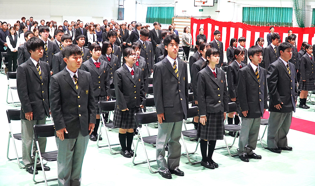 新入生代表宣誓では、普通科の首藤聖(ひじり)さん(井之川中出身)が、「樟南二高の生徒としての自覚を持ち、それぞれの目標に向かって勉学やスポーツに励み、先輩方が築いてきた伝統をさらに発展させ、充実した学校生活を送ることを誓います」と力強く述べた。