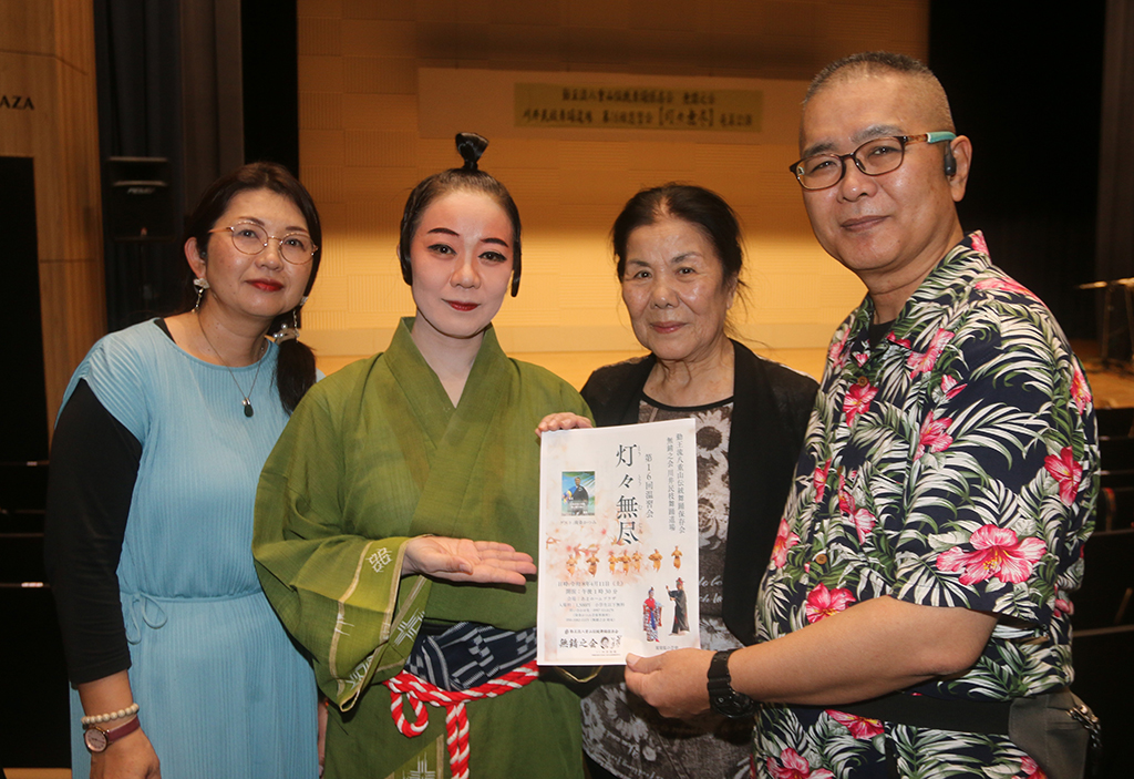 会場となったマチナカホールは開場前から多くの来場があり、2階まで満席。公演のあいさつでは司会者から「灯々無尽」について「八重山の伝統芸能を正しく継承し世に伝え、その灯(あか)りを広める」との説明があり、「八重山は唄(うた)の国、舞(まい)の島。首里王府の琉球舞踊や古典との比較、門下生の練習の成果などを楽しんでほしい」と呼び掛けた。
